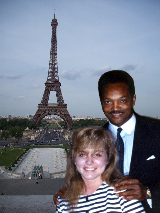 Jesse and me, looking like quite the couple. Since I’d already cut it out with scissors years ago to put it in a collage, it was all ready to take the show on the road. (Please see “Wayout Vault” for full story.)